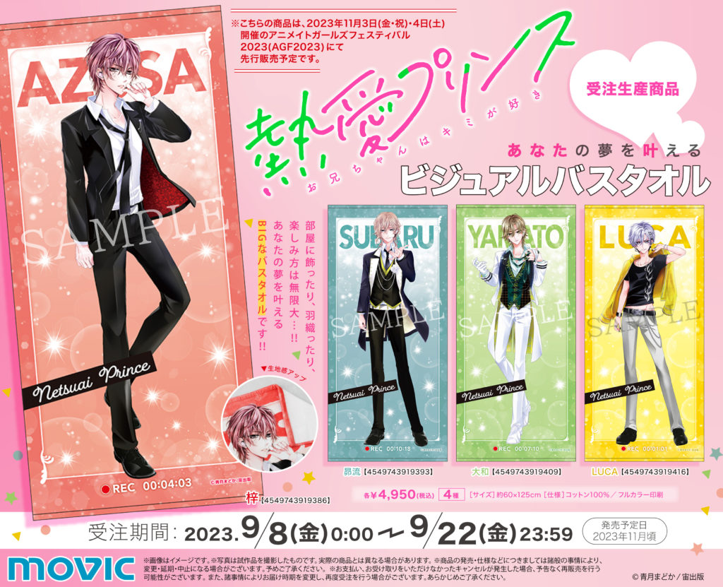 本日より予約受付開始『熱愛プリンス お兄ちゃんはキミが好き』あなたの夢を叶えるビジュアルバスタオル 受注生産展開なので予約受付期間にご注意を!