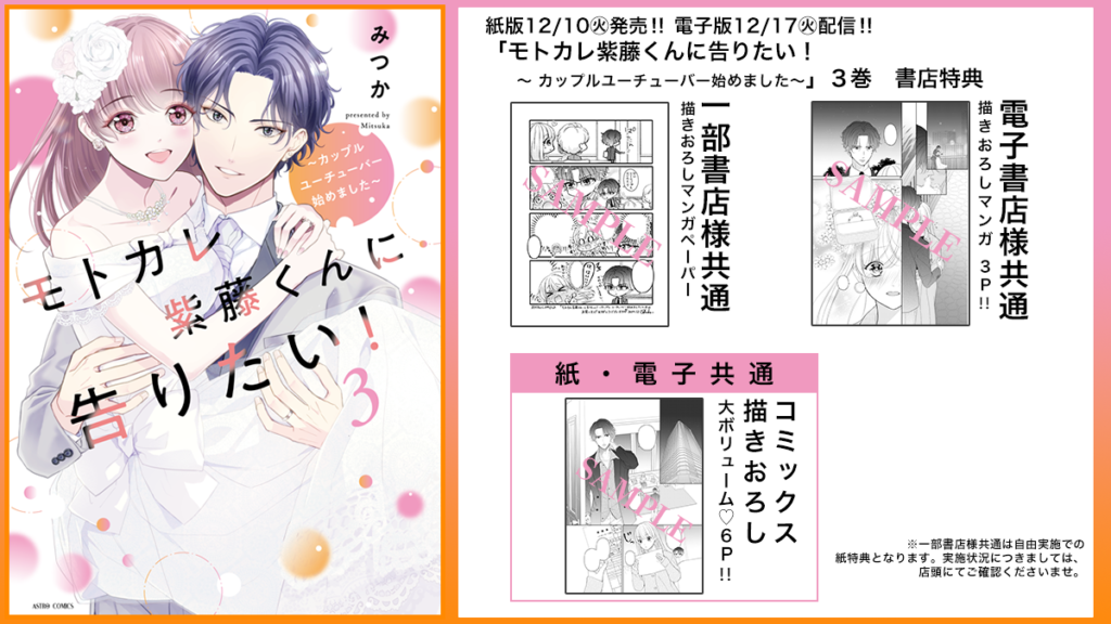 12/10発売『モトカレ紫藤くんに告りたい! ~カップルユーチューバー始めました~ 3』購入者特典のお知らせ